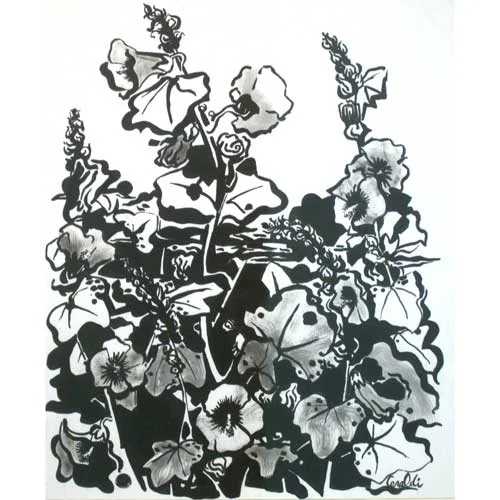 Hollyhocks: acrylic on French Paper 18"x24"